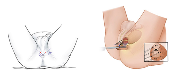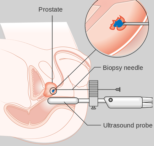 Hoje é realizado o ultra-som trans-retal mas se faz acesso da agulha de biópsia elo períneo. (Imagem) Este via permite acesso a regiões abaixo e acima da uretra, muito difícil na biópsia transretal, além de diminuir muito a possibilidade de uma infecção.