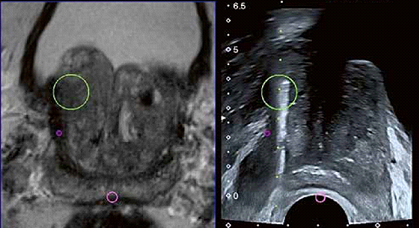Hoje em dia a biópsia padrão é realizada com auxílio do ultra-som, utilizando-se fusão de imagens da ressonância magnética com a imagem do ultra-som. Desta maneira se consegue amostrar exatamente a área suspeita que aparece na ressonância realizada antes da biópsia. O sensor do ultra-som é colocado no reto, a próstata visualizada e as imagens sincronizadas com as imagens da ressonância previamente carregadas no aparelho.