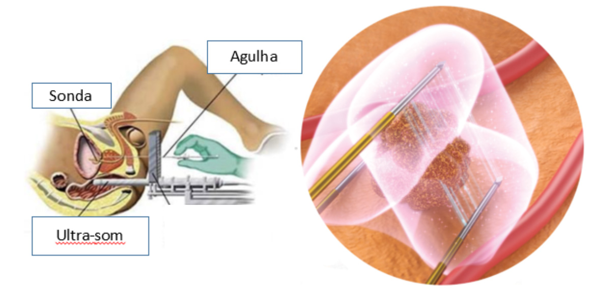 Na eletroporação sondas ou eletrodos são posicionados precisamente no tumor prostático, guiados por ultrassonografia.